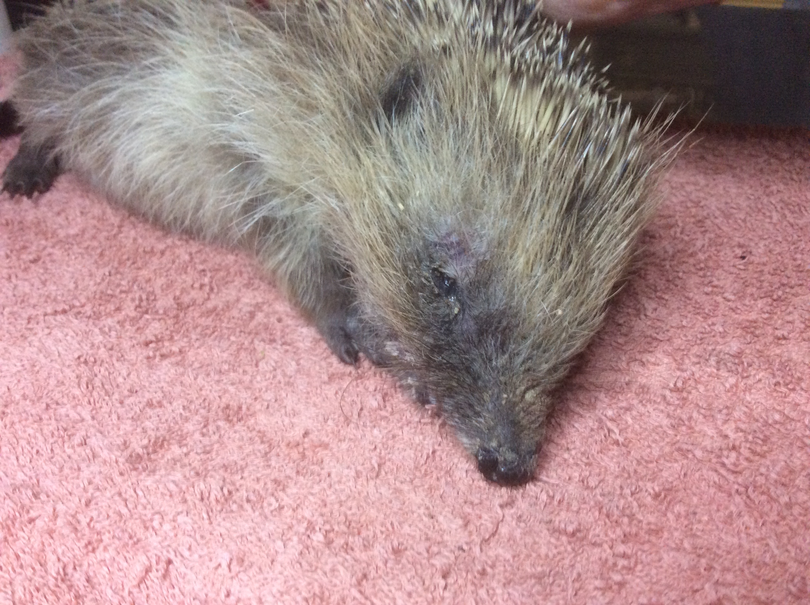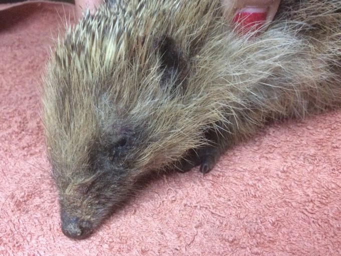 Vers intestinaux, tiques et puces. Il a du sang dans l’oreille, la gueule et sur le museau. N’arrive pas à fermer la gueule. L’œil gauche est infecté. Respiration très difficile. A sans doute subi un choc.