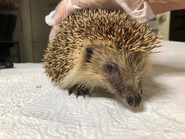 Une famille de 3 hérissons (maman et deux bébés) trouvés dans le jardin d’une famille de retour de vacances. Ils ont été alertés par le bruit de respiration de la maman hérisson qui était très fort.