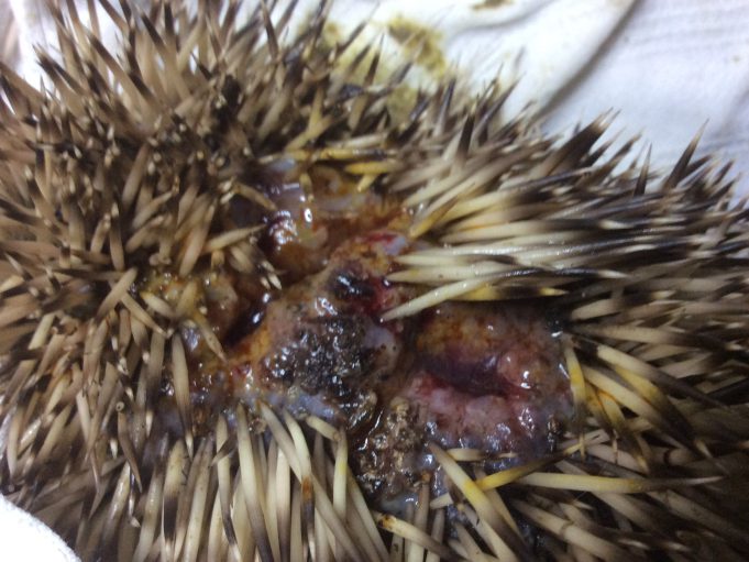 Morsures profondes, asticots dans les plaies déjà infectées. Tiques dont de très nombreuses toutes petites. Vers intestinaux.