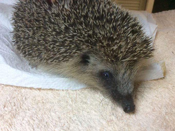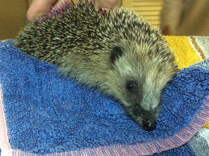 Le 18/11/2016 : Sandrine a recueilli un nouvel hérisson. Stressé, Pitchounet a perdu du poids. Il rejoint le centre.