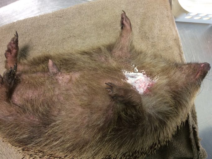 Le 06/06/2016 : Bain désinfectant pour vérifier la plaie thoracique. Elle semble encore bien ouverte, rendez vous est pris pour un examen approfondi chez le véto.