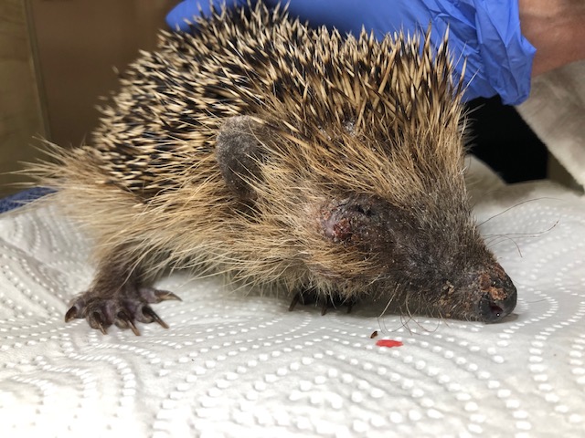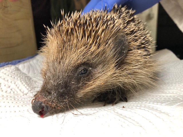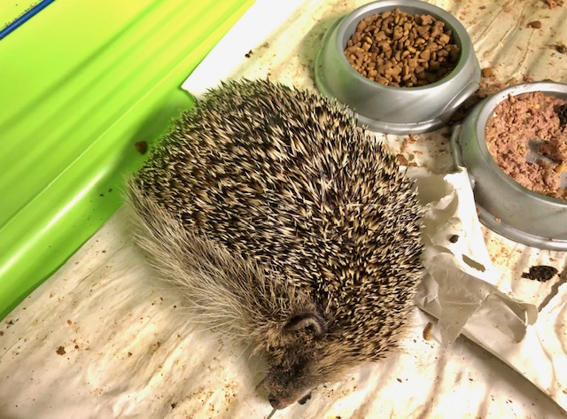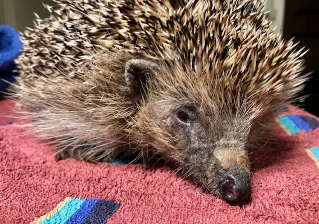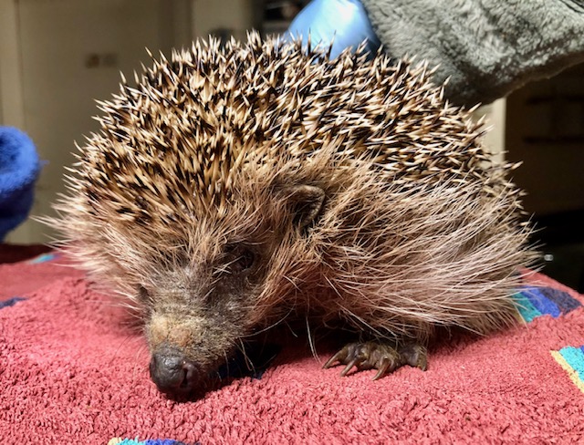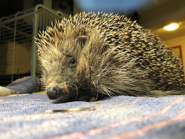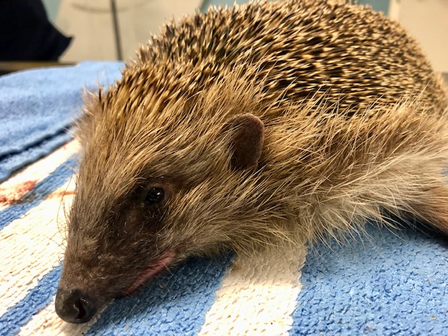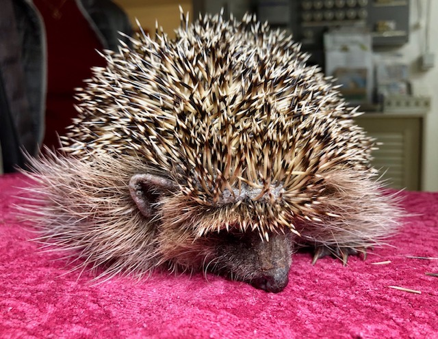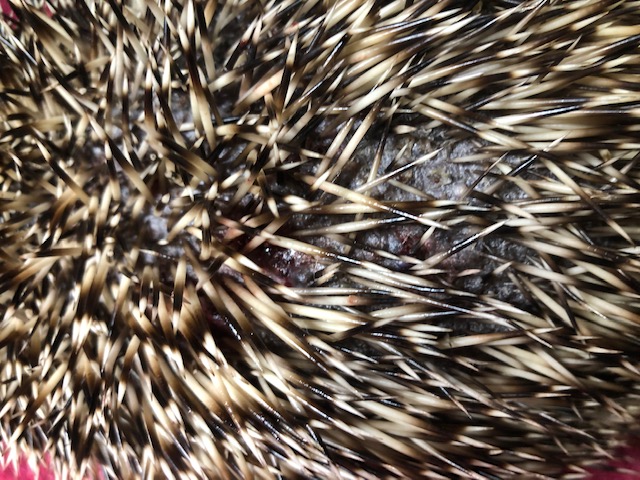 Hérisson apporté le 18 septembre à la clinique vétérinaire de la Jonction et apporté au centre pour Sylviane bénévole au centre SOS hérisson. Il a été soigné pour un abcès.
