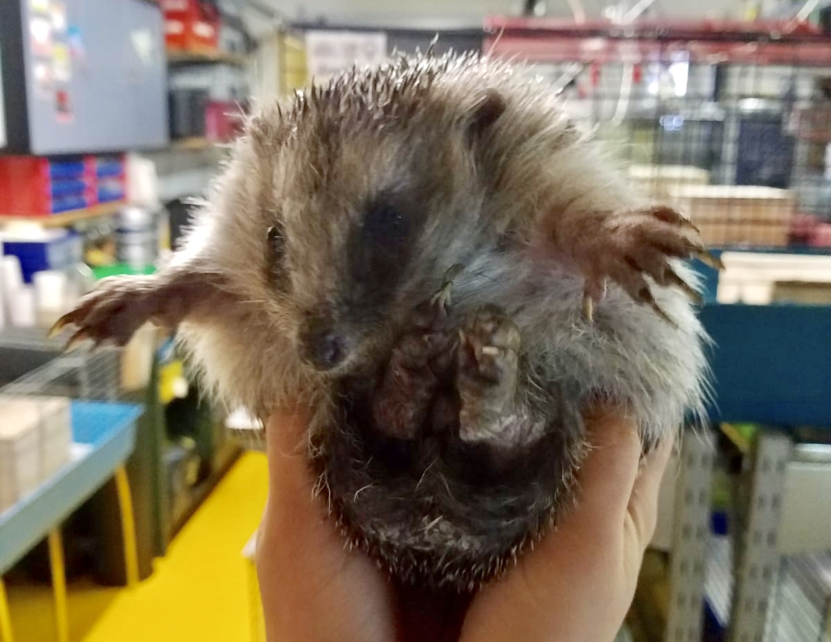 Jamais vu autant de puces sur un hérisson, elle saigne de partout. Pleine de tiques, de teigne et très sale. Ventre très gonflé.