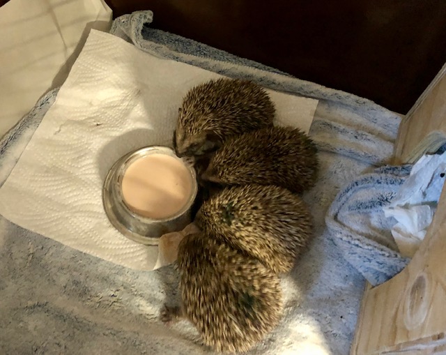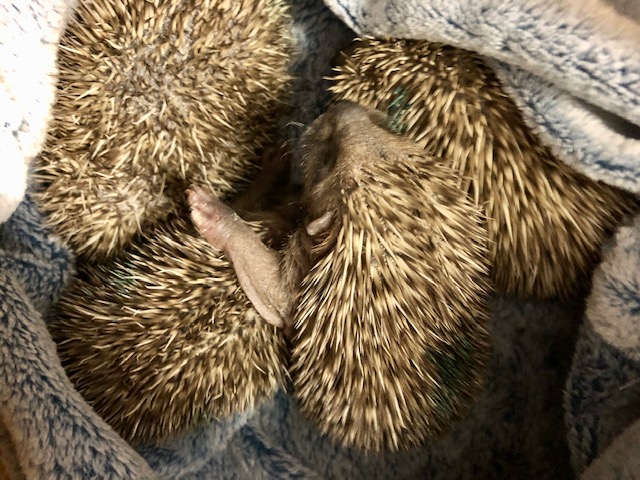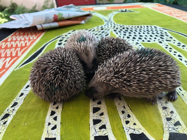 4 bébés hérissons trouvés par une vétérinaire du Pays de Gex errant en plein jour. Un cinquième est décédé, 3 des hérissons survivants étaient blessés. Très amaigris, ils sont arrivés au centre via la clinique des Tuileries.