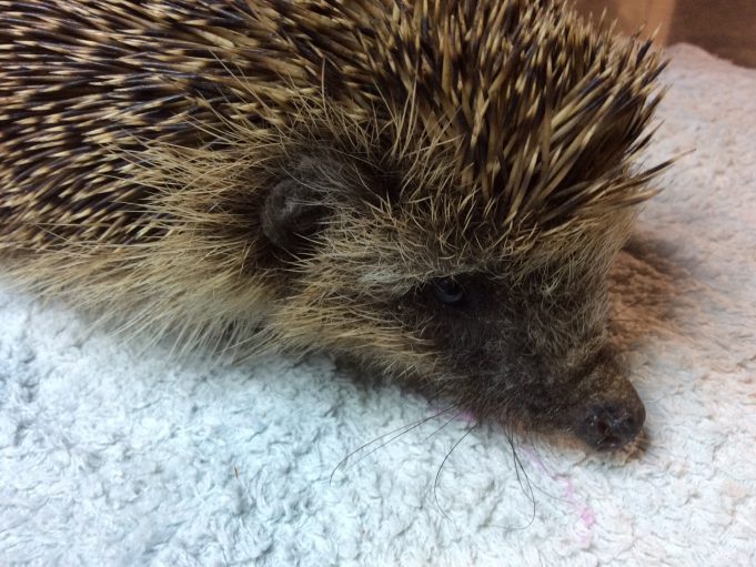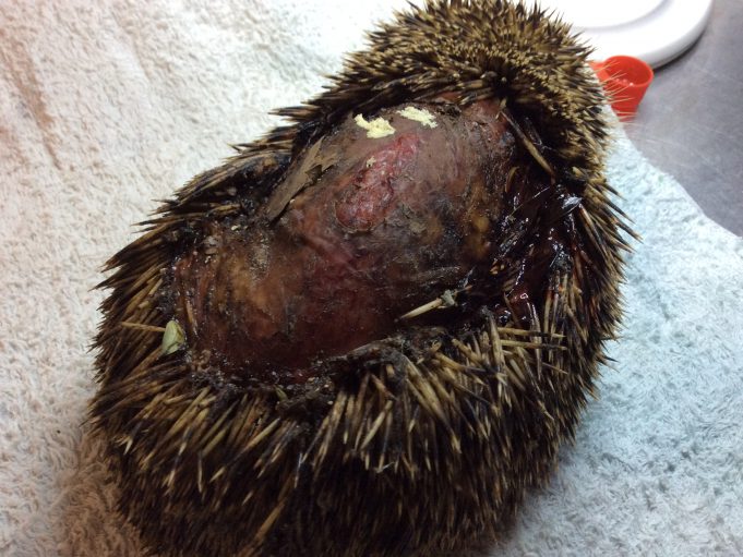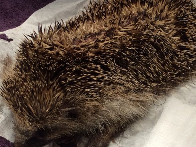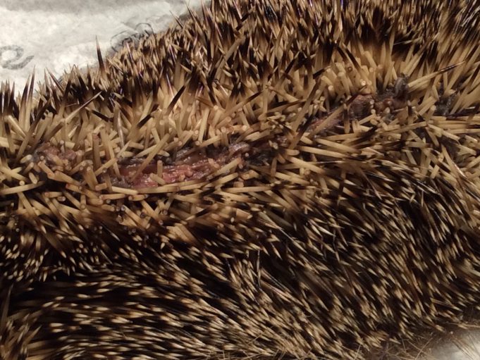 Le 01/08/2018 : Toute la peau du dos a été arrachée. Il y a des oeufs de mouches, déjà des asticots, il est plein de tiques et puces et très sale