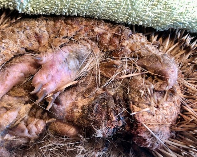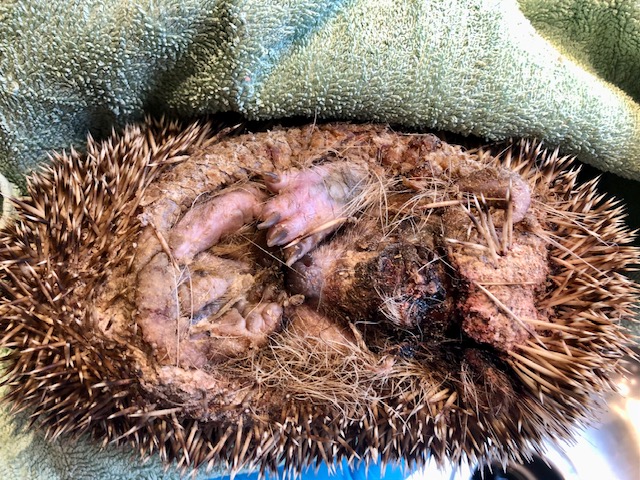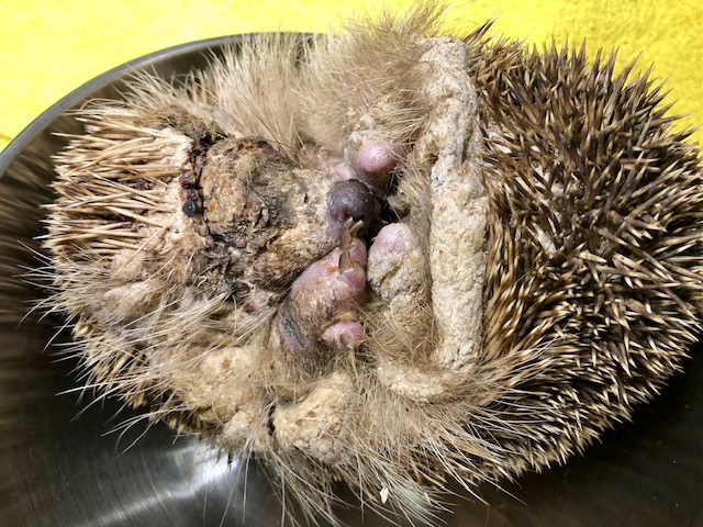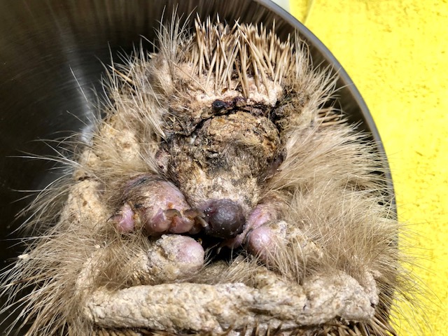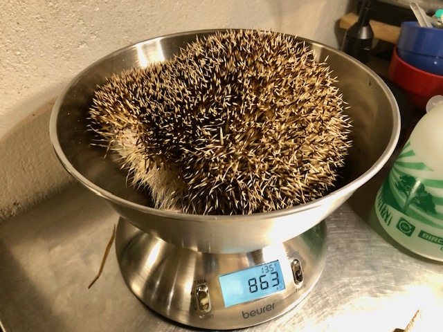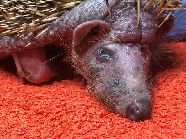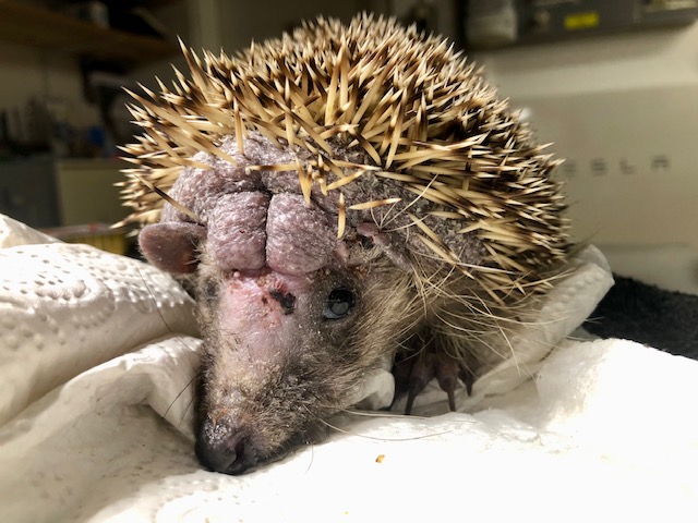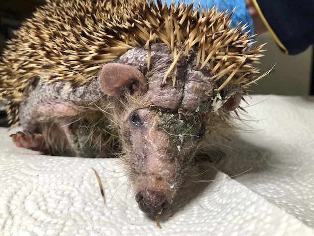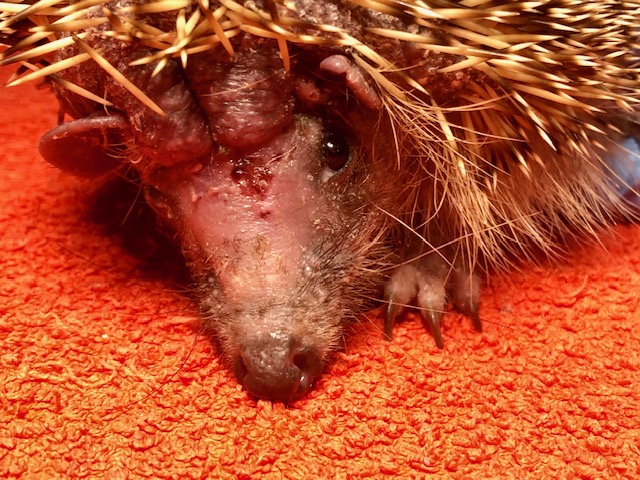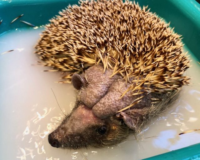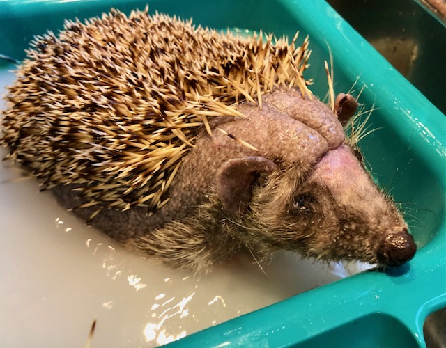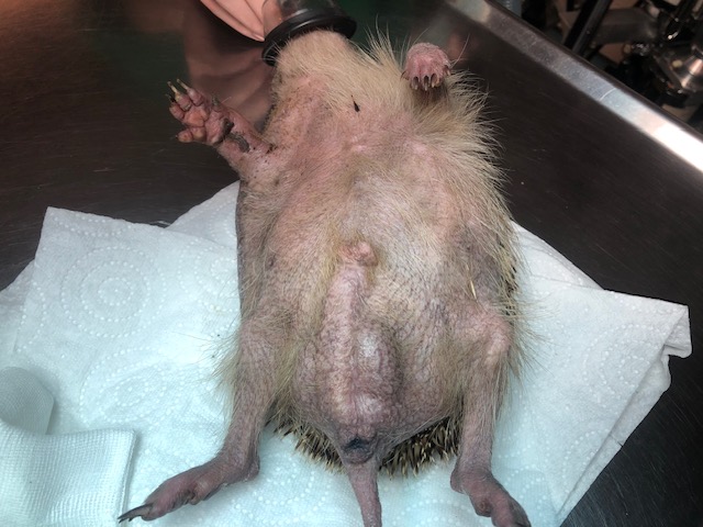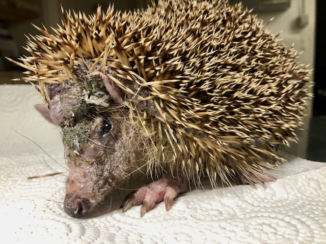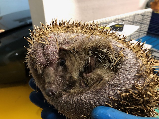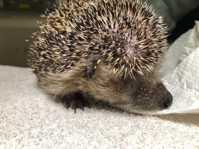 Hérisson gardé une semaine qui doit nécessiter des soins.