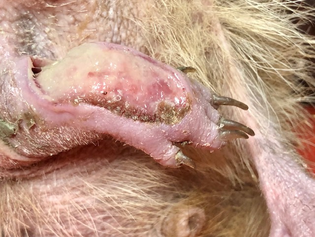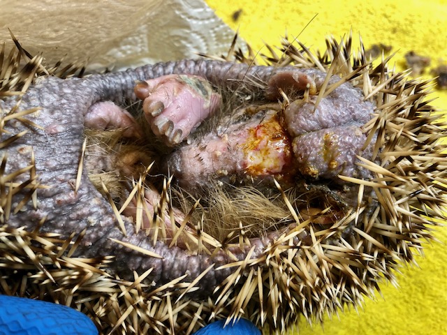 Le 22/11/2023 : Mais la patte avant droit n'est vraiment pas jolie maintenant qu'on la voit bien. Il y a beaucoup de tissus nécrosés.