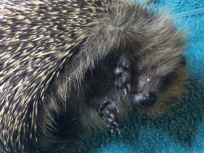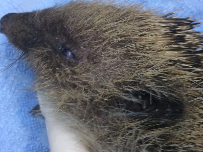 Ne tient pas sur ces pattes, prise de spasmes, elle tombe sur le côté. Pas de blessures apparentes. Pas de sang dans les oreilles, yeux exorbités. Symptôme apparentés davantage à un empoisonnement qu’à un choc post traumatique. Mange bien à la seringue mais incapable de se nourrir seule. Arrive à sortir du nid et y rentrer seule.