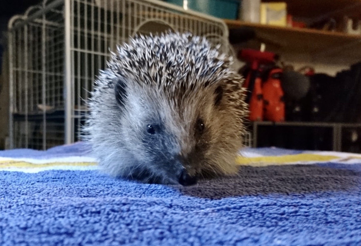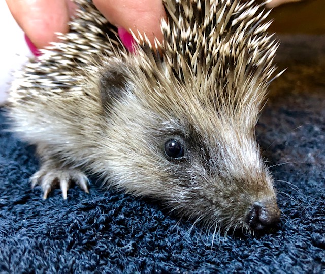 Trop petit pour se débrouiller seul. Il est plein de puces et un peu maigre mais sinon a l’air en bonne santé. Il pourrait être le frère des 4 autres petits hérissons trouvés au parc Bertrand. dimanche (il y deux jours).