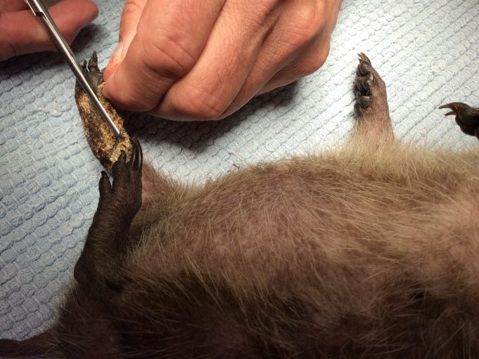 Le 01/06/2016 : Has, la patte ne s'est pas consolidée, les ligaments sont sectionnés et elle gardera une patte folle. Il faudra lui trouver un endroit bien tranquille