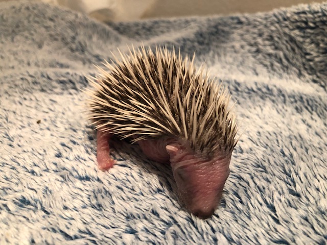 Malgré tout mes soins je n’ai as réussi à faire quoique ce soit pour cette petite qui ne grandissait pas contrairement à ses deux frères. Elle mangeait moins, avait de plus en plus de peine à bouger et à faire ses besoins et à la fin même à manger. Je ne sais pas pourquoi j’avais cet espoir fou d’y arrive alors qu’il était clair qu’elle avait de la peine à croitre, sans doute parce qu’elle était si mignonne et que c’était la 3e des 5 nouveaux-nés qui finissait par mourir. Elle est partie au paradis des hérissons et c’est sans doute mieux pour elle.