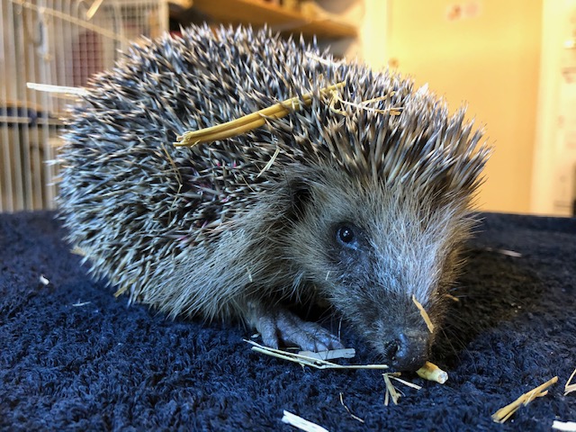 C’est un des 4 petits hérissons trouvés en plein jour au parc Bertrand. Il avait été placé en parc extérieur chez Claire mais il perdait du poids. Alors le voilà de retour au centre.