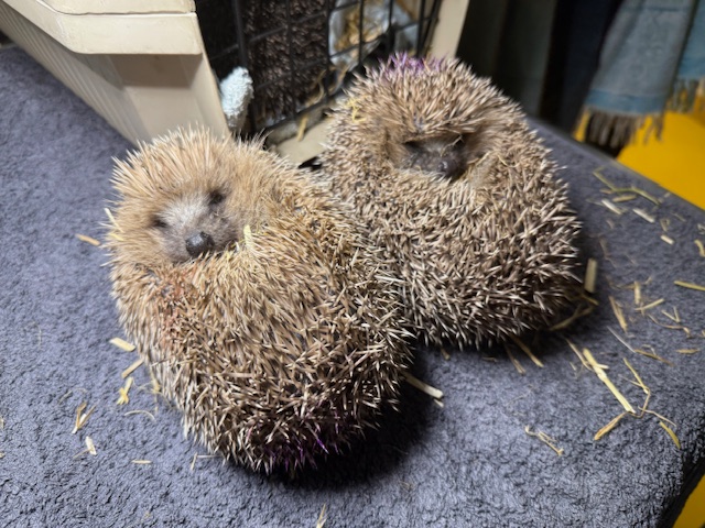Le 12/10/2025 : Zibeline à son arrivée au centre avec ses 3 petits. Ici Zoreille